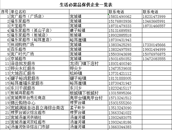 按照宽城县疫情防控工作领导小组(指挥部)办公室总体安排部署,在实施临时性全域全员核酸检测期间,拟定宽广超市、百乐超市、福乐家超市、祥润购物广场、宽广时代广场、天宝超市、京城超市、畅通粮店、永兴粮店、福瑞粮店、宽仁堂大药房、颈复康药店等为保供企业。目前,我县生活必需品库存充足,各保供企业APP小程序正在调整保供配送区域,生活必需品稍后上架,请大家耐心等待,不要恐慌。如有婴幼儿等特殊人群的食品、用品采购需求,可随订单留言,客服会回复您登记购买,或请联系所在小区楼院长统计购买。
